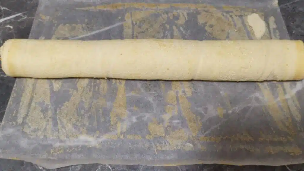 - Rolle den Biskuit, solange er noch warm ist, um Risse zu vermeiden und eine feste Rolle zu erhalten.