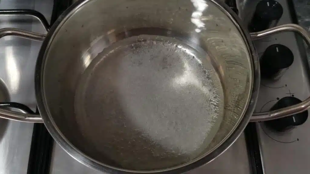 - Add water and sugar to a small pot.