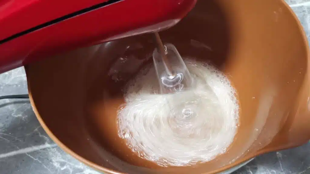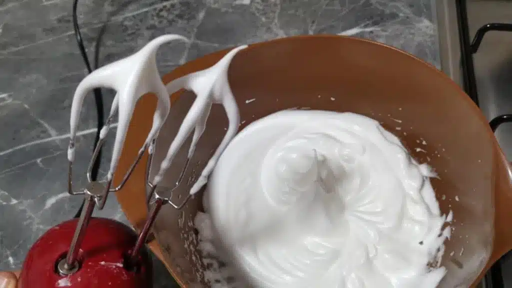 - Beat until stiff peaks are formed.