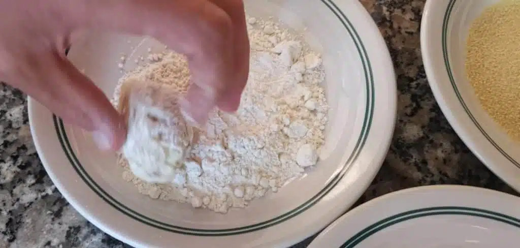 - Bereite drei separate Schüsseln mit Mehl, verquirlten Eiern und Semmelbröseln vor. Beginne damit, die Kroketten nacheinander mit Mehl, dann mit Eiern und dann mit Paniermehl zu bedecken.