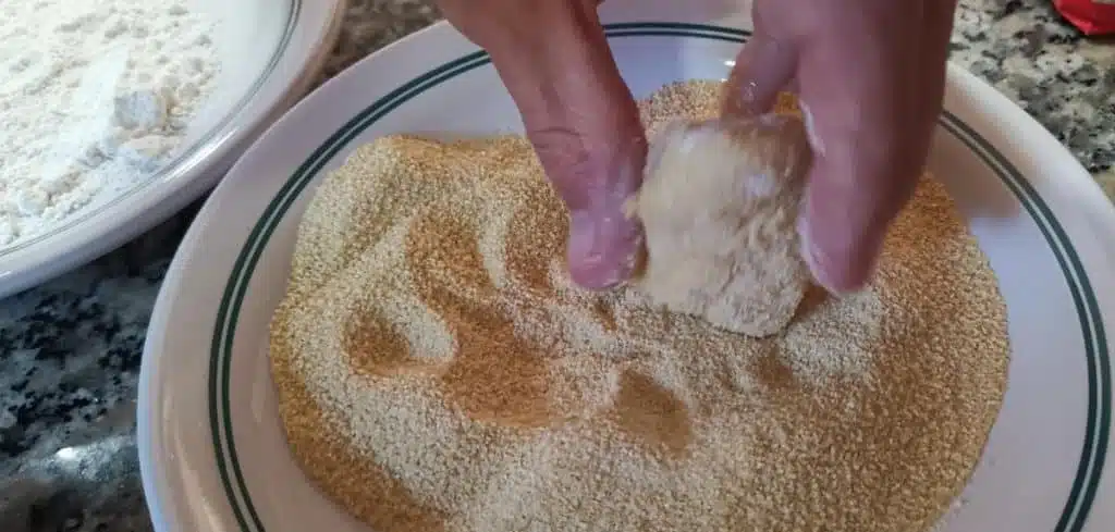 Außerdem musst du den Teig für mindestens drei Stunden in den Kühlschrank stellen. Wenn du planst, die Kroketten am nächsten Tag zuzubereiten, kannst du sie über Nacht im Kühlschrank lassen, aber achte darauf, dass er abgedeckt ist.