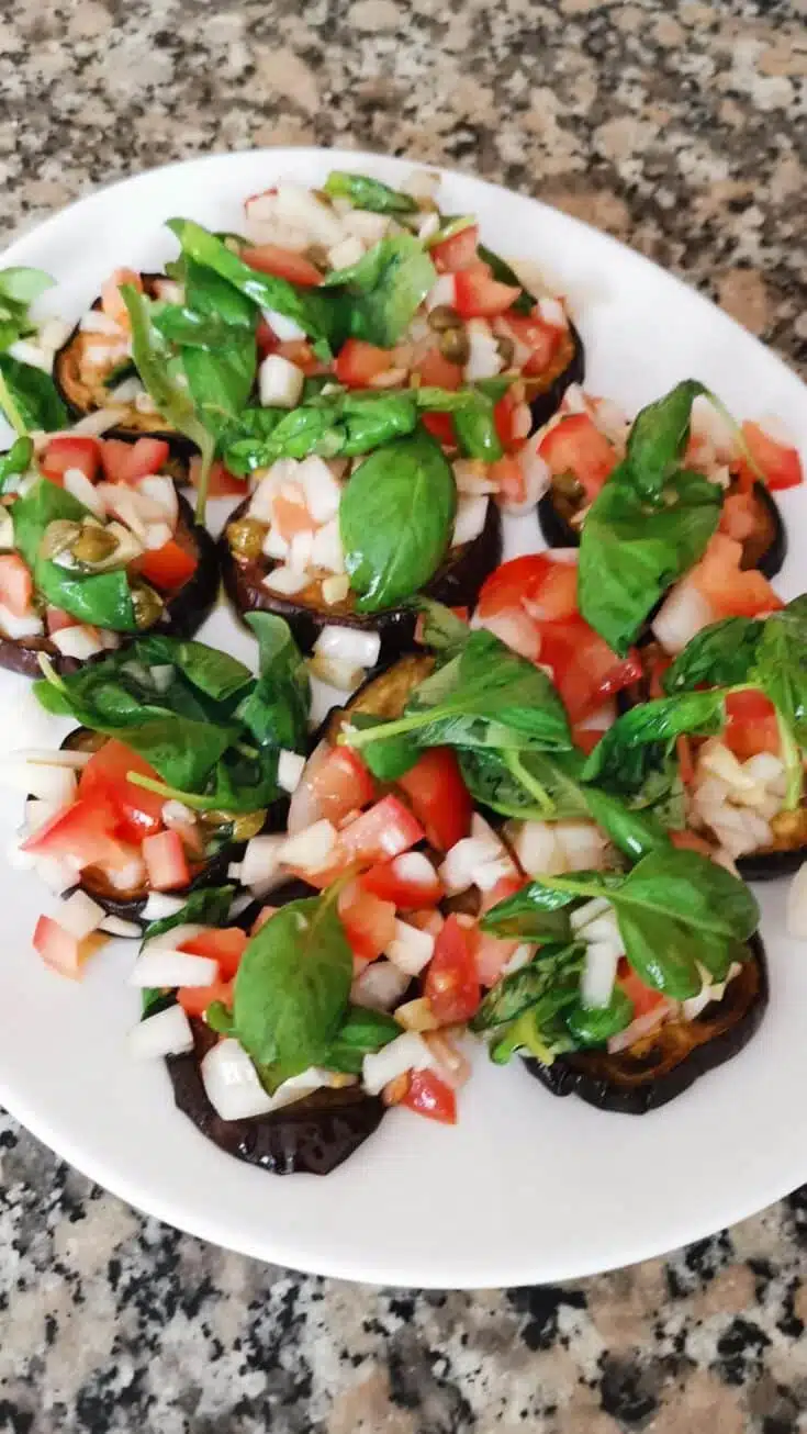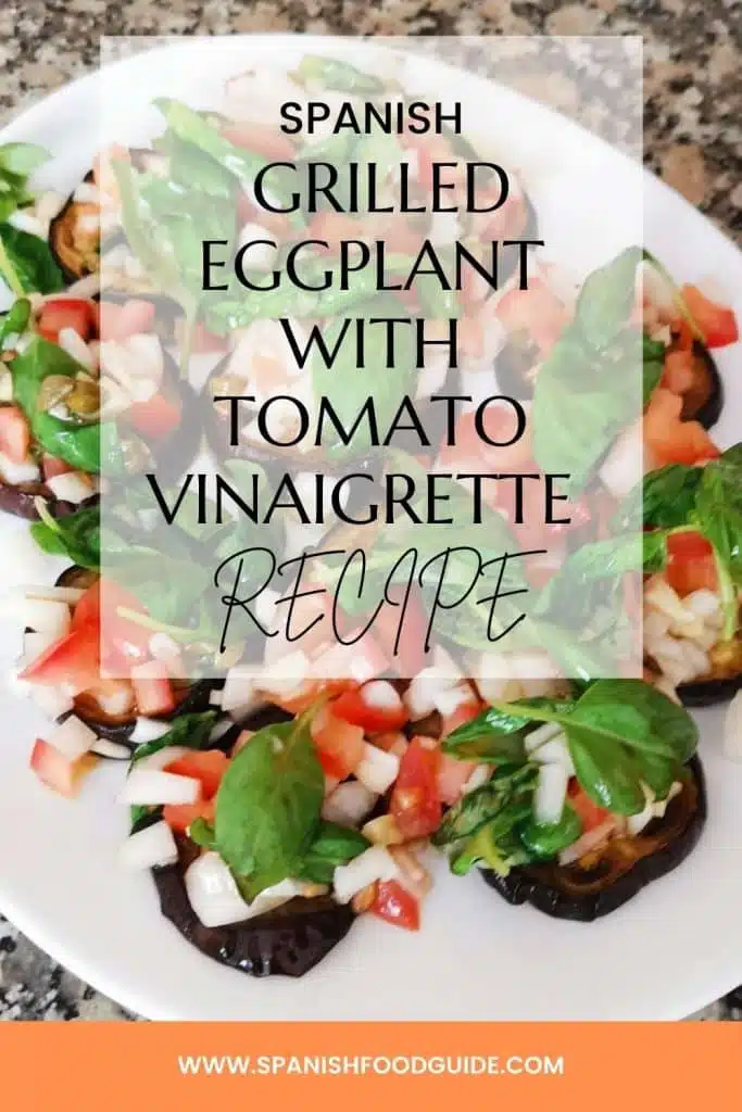 ¡Esta receta española de berenjena a la parrilla con vinagreta de tomate es muy fácil de preparar! Además, es una de las tapas Españolas que sí o sí debes probar.