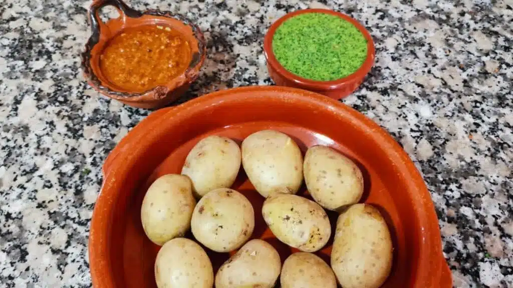 Una salsa, il mojo Verde, è preparata con coriandolo, peperoncino verde e aglio. L’altra salsa, il mojo picon, è fatta con paprika e peperoncino rosso.