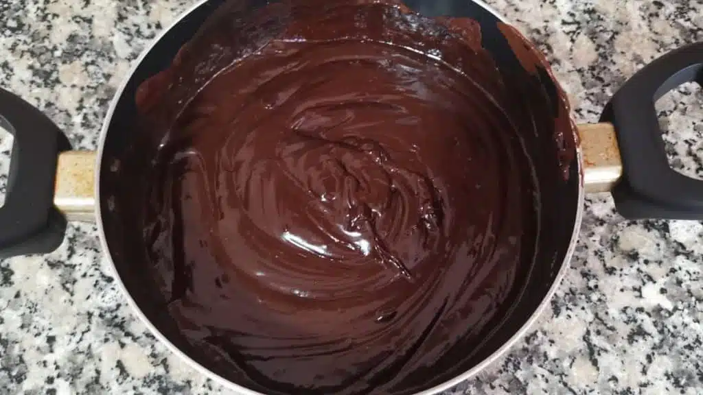 - Place the chocolate in a metal bowl (if you don’t have a metal bowl at home, a smaller pot also does the job as you can see in our photo) and place the bowl with the chocolate on top of the hot water.