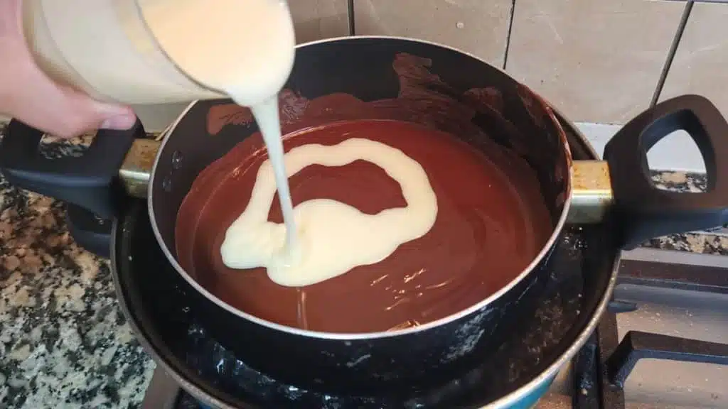 Once the chocolate is melted, add condensed milk to the bowl and mix everything well.